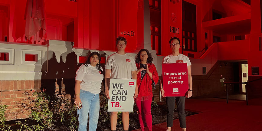 In our quest to build awareness of the impacts of TB, one of the biggest diseases of poverty, Results' Light Up Red for TB event attracts significant attention each year. On March 24, our staff and Advocates organise locations around Australia to be lit up bright red! Our Light Up campaign is part of a global event.